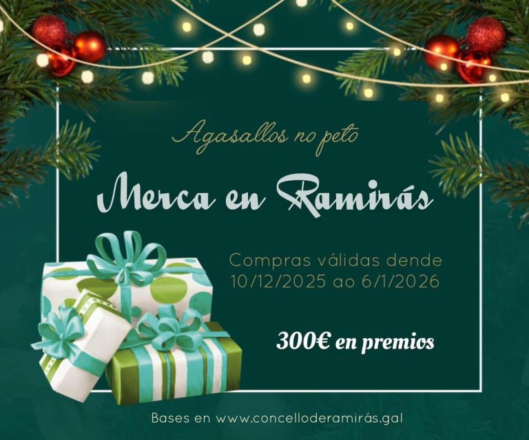 Bases da campaña Agasallos no Peto, a través da cal se sortearán 300€ entre todos os participantes que realicen unha compra mínima de 30€ no comercio local do Concello de Ramirás, xa sexa comercio ou hostalaría. (Exceptúanse combustible e fármacos).